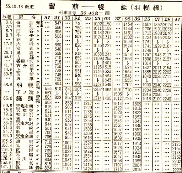 時刻表見聞録1958年11月