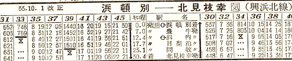 北見線・浜頓別〜北見枝幸の興浜北線です。6往復と区間列車が設定されています。しかし1985年(昭和60年)7月1日に廃止となりました。