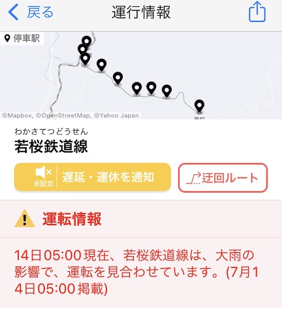 2023年7月14日、鳥取地方の数日前からの大雨のため、JR因美線の鳥取〜智頭間、および若桜鉄道全線で運転を見合わせていた。明日からの三連休を利用して鳥取方面への鉄旅を計画しているが、どうなるのか?