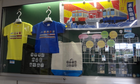 駅にはTシャツ、タオル、トートバッグなどのいろいろなグッズが売られている。