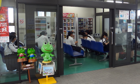 すべての女子高生がこの駅で降車した。この駅の近くには倉敷市営球場がある。