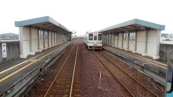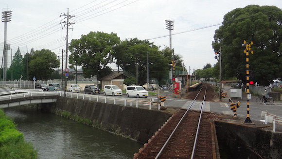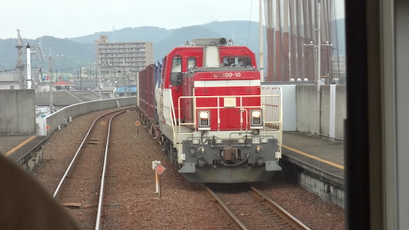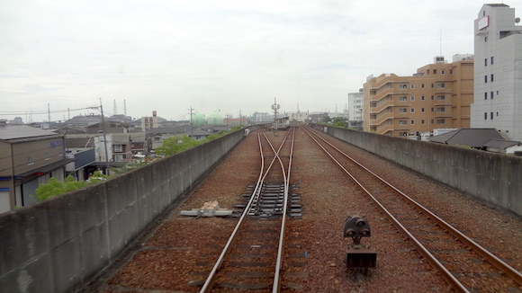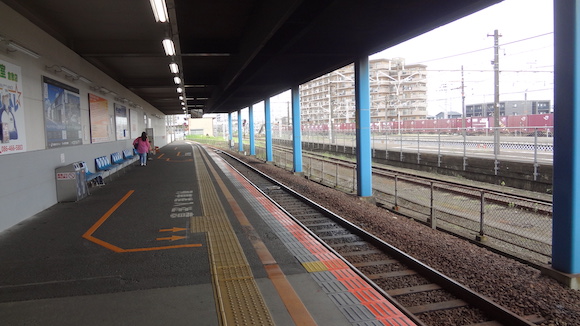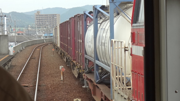 右側にはJRの線路が広がる。この写真では分からないが、JRと水島臨海鉄道の線路は一部で繋がっている。