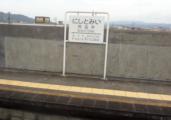 球場前駅を出てしばらくすると線路は高架になる。次の駅は西富井駅で、この駅は列車交換が可能だ。