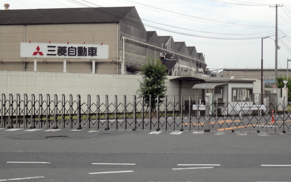 次に倉敷市駅へ戻る列車は、三菱自工前発ではなく水島発なので、水島駅まで歩く。左手には三菱自動車の工場がある。