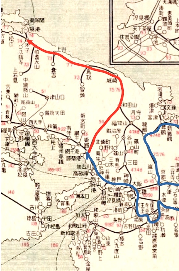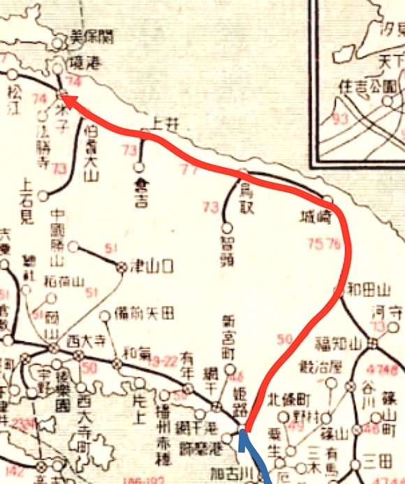 18日目は姫路から北上し和田山から山陰本線を西へ向かいます。