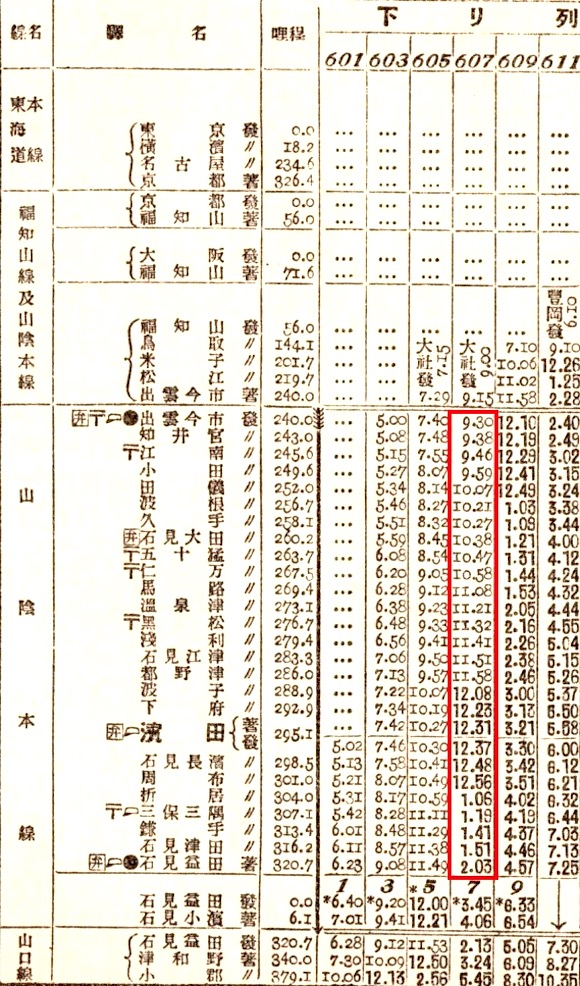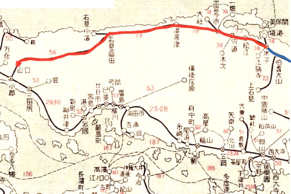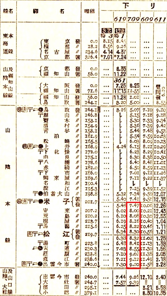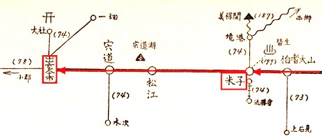米子7時47分発の列車で出雲今市(現出雲市)には9時20分に到着します。