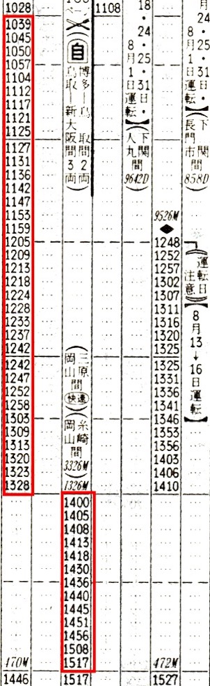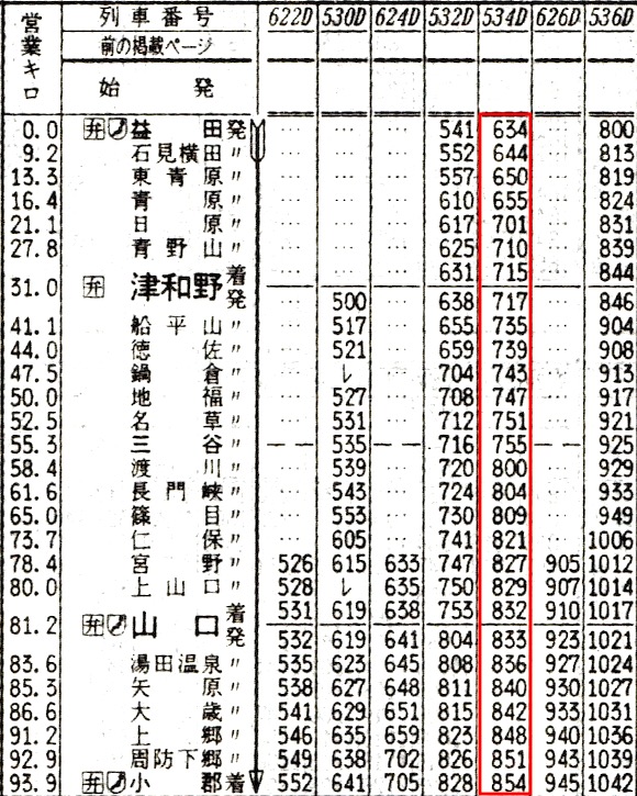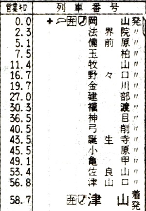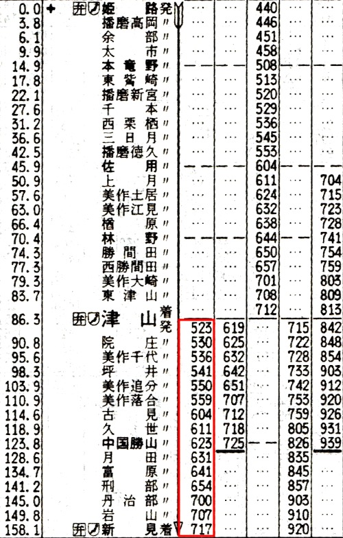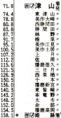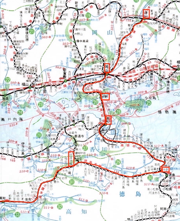 窪川からは窪川→高知→阿波池田→佐古→高松→宇野→岡山→津山と進む。