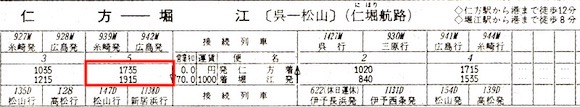 仁方駅から徒歩12分で仁方港に到着する。仁堀航路は1日2本なので、接続は良いと言える。仁堀航路は二日後の6月30日で営業を終える。1時間20分で四国の堀江港に到着する。