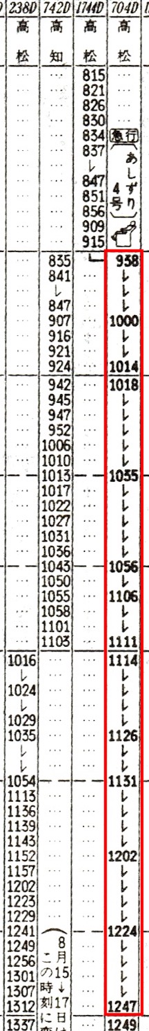 窪川0938-1111高知1114-1247阿波池田 土讃本線 急行あしずり4