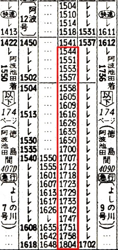阿波池田1252-1502佐古 土讃本線/徳島本線