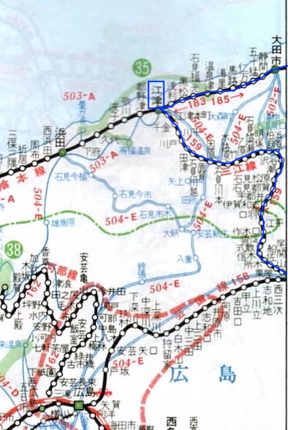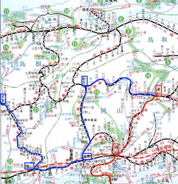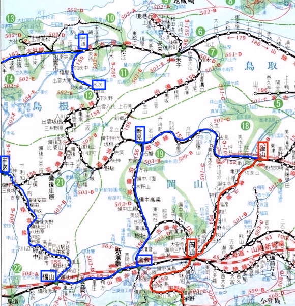 8日目はまず津山→新見→倉敷→福山→三次と進む。