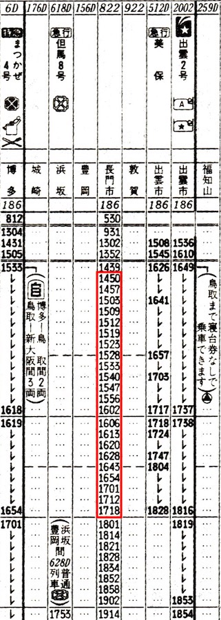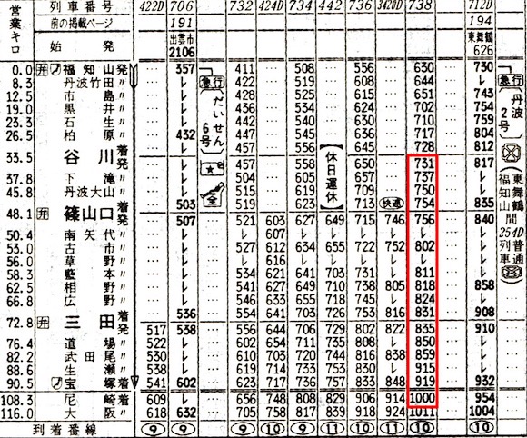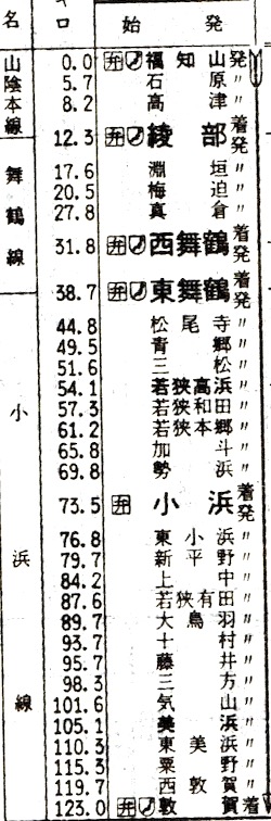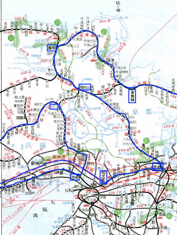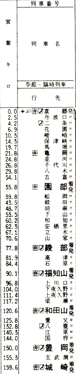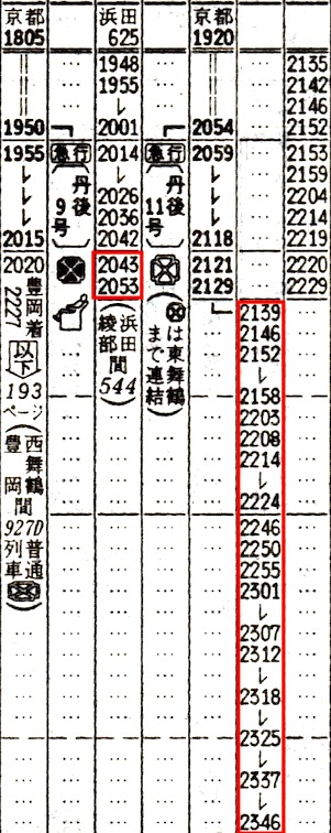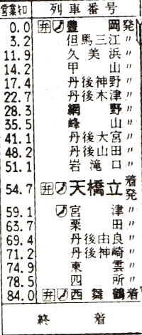 京都1321-1450綾部1504-1520福知山1529-1715豊岡 山陰本線 急行丹後5