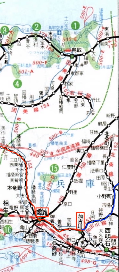 今日は木次→備後落合→備中神代→伯耆大山→鳥取→東津山→姫路→加古川と進む。