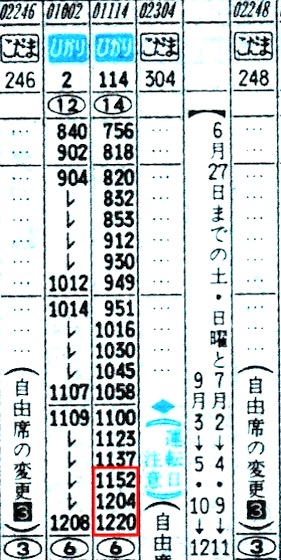 1006 西明石1152-1220新大阪 山陽新幹線 ひかり114