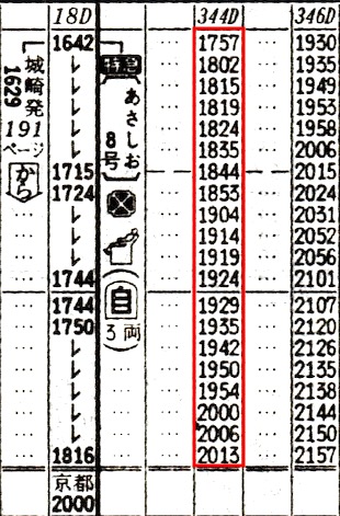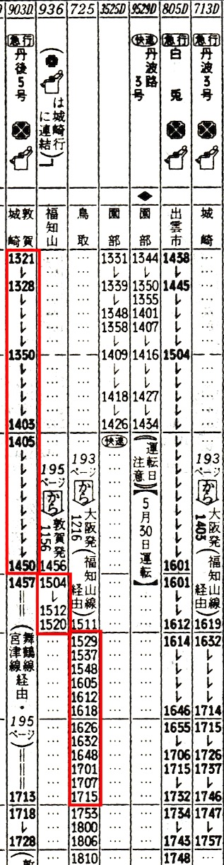 1008 京都1321-1450綾部1504-1520福知山1529-1715豊岡 山陰本線 急行丹後5 903D/936/725