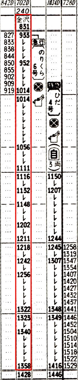 1102 金沢0831-0925富山0933-1358岐阜 北陸本線/高山本線 急行のりくら6 702D