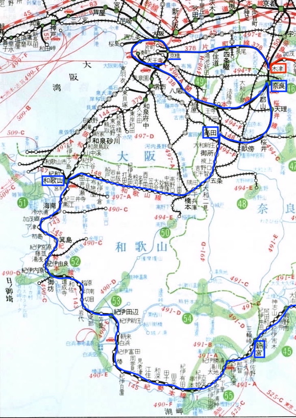 今日はまず木津→京橋→天王寺→奈良→高田→和歌山→新宮を目指す。