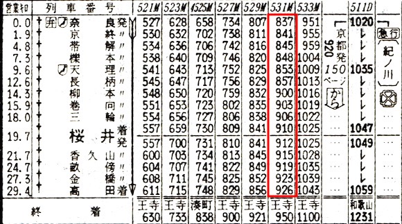 高田0951-1029五条1032-1202和歌山 和歌山線