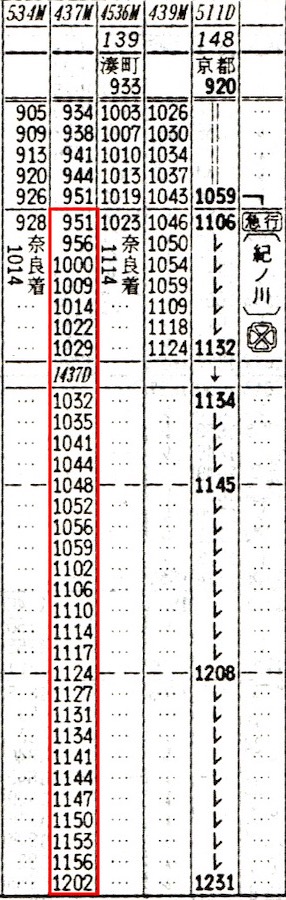 1205 高田0951-1029五条1032-1202和歌山 和歌山線 437M/1437D