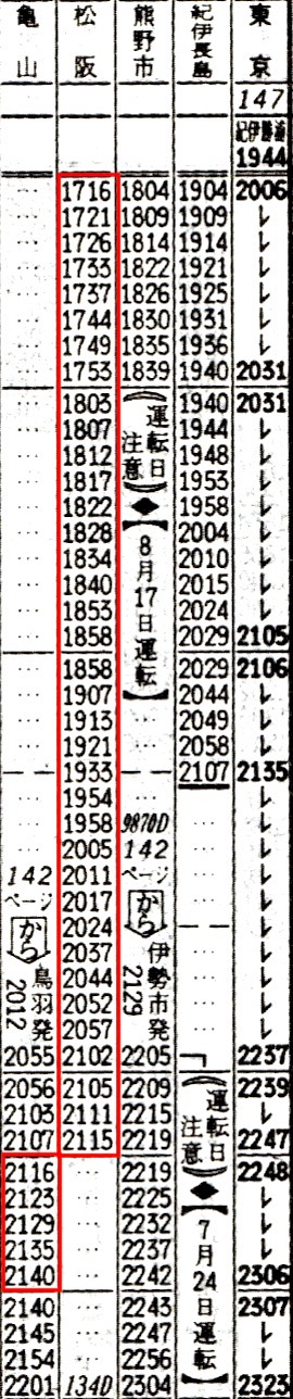新宮1716-2115松阪2116-2140津 紀勢本線