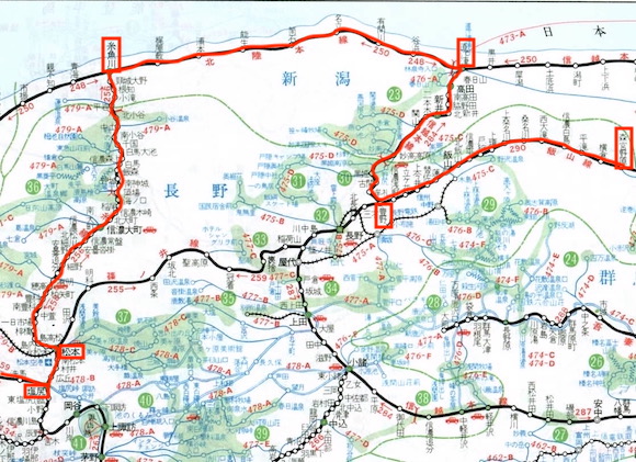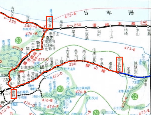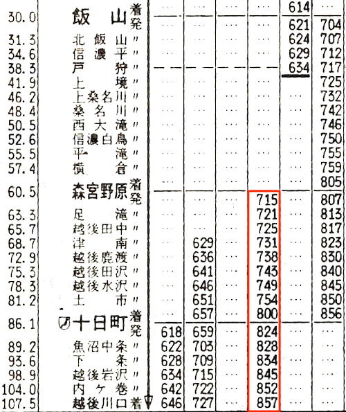 次いで松本→信濃大町→糸魚川→直江津→豊野→森宮野原へ進む。