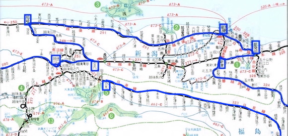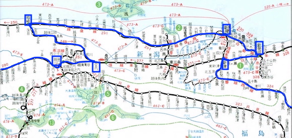 そして森宮野原→越後川口→宮内→柏崎→新潟→新発田→新津→会津若松と進む。