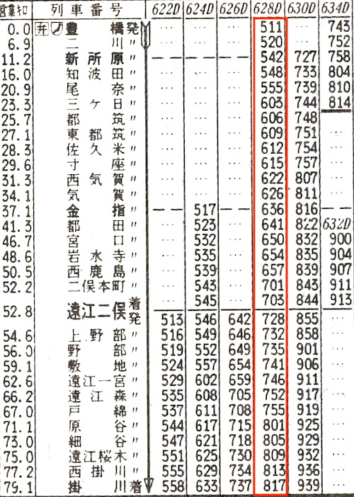 1601 豊橋0511-0542新所原0542-0817掛川 東海道本線/二俣線 628D