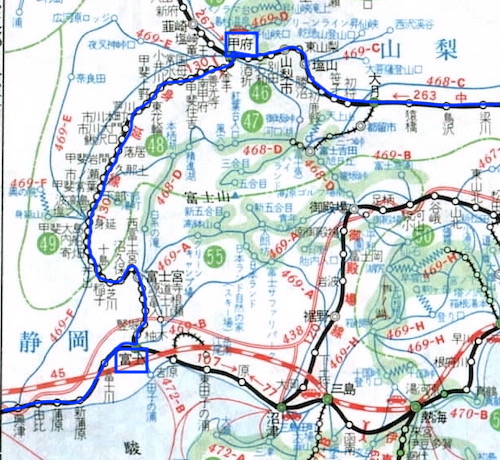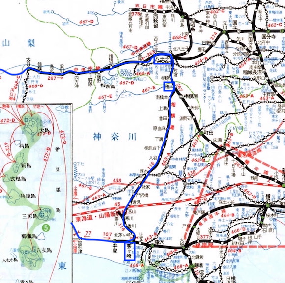 次いで甲府→八王子→橋本→茅ヶ崎→国府津と進む。