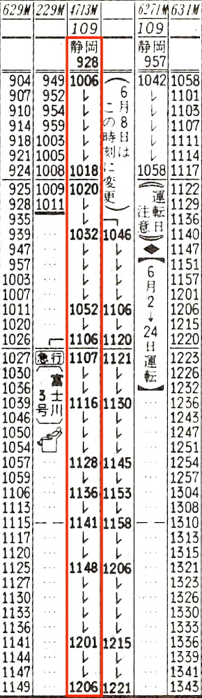 1603 静岡0928-1001富士1006-1206甲府 東海道本線/身延線 急行富士川3 4713M