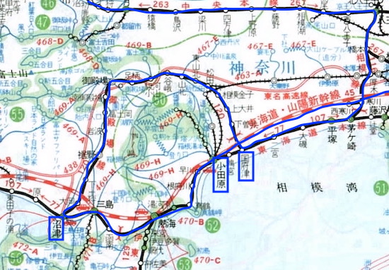 次いで茅ヶ崎→国府津→沼津→小田原→東京と進む。