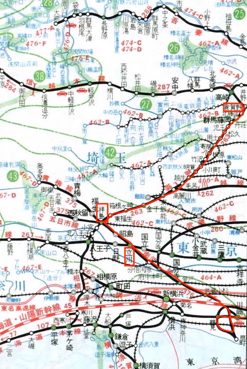 次いで浜川崎→尻手→立川→拝島→倉賀野と進む。