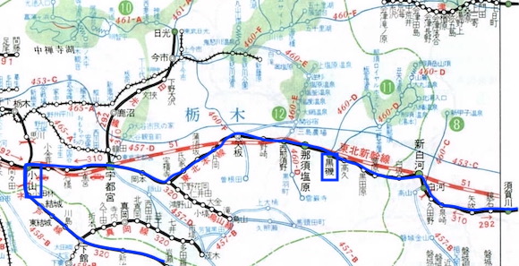 大網からは成東→松岸→成田→我孫子→友部→小山→宇都宮と進む。