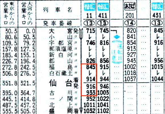 福島0845-0914仙台0916-0933古川 東北新幹線 やまびこ11