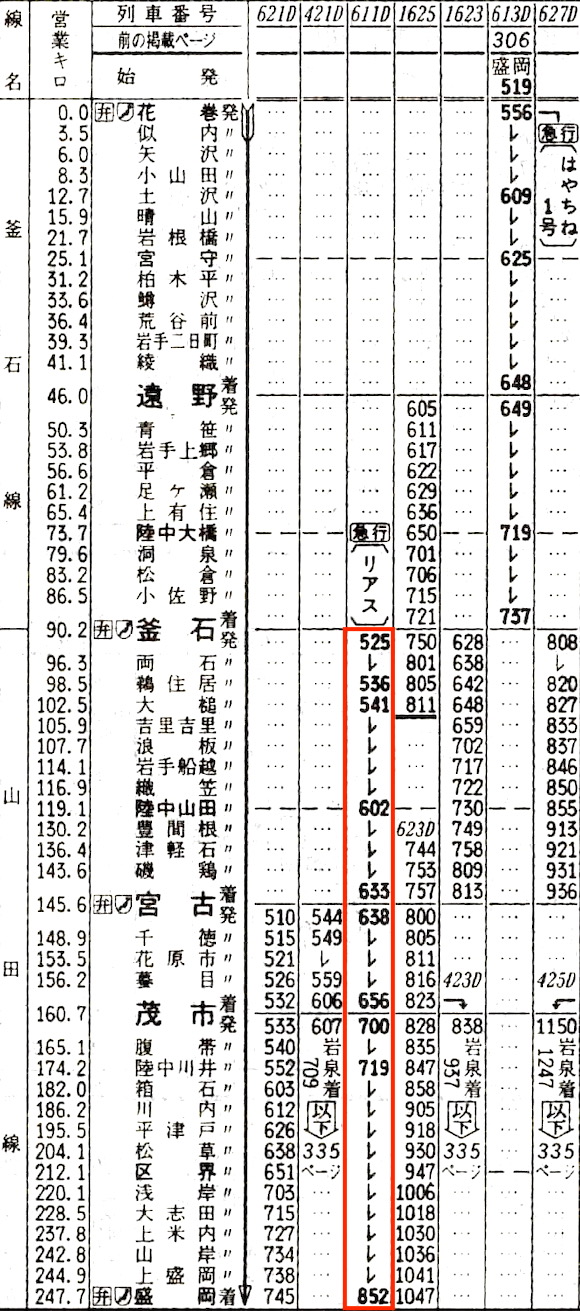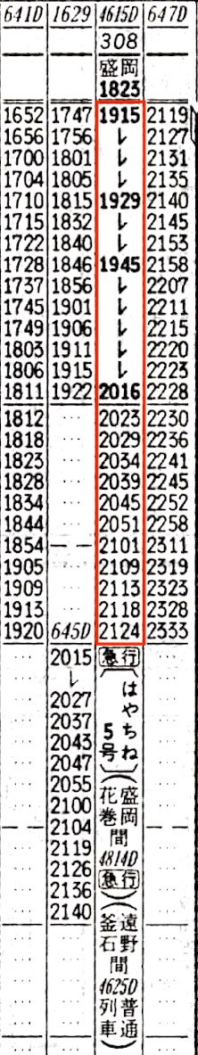 1909 花巻1915-2016遠野2023-2124釜石 釜石線 急行はやちね5 4615D/4625D