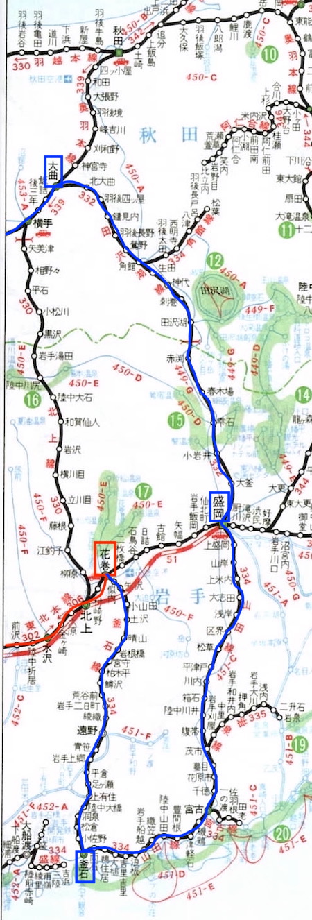 釜石からは、釜石→宮古→盛岡→大曲と進む。