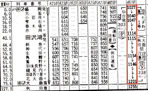 盛岡1027-1201大曲 田沢湖線 急行たざわ1