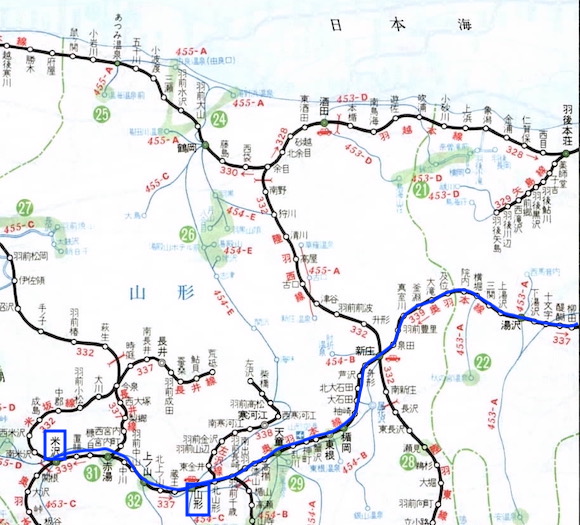 米沢からは、米沢→坂町→鼠ヶ関→あつみ温泉と進む。