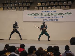 仮面ライダー響鬼ショーは小さな子供さんで大賑わいでした。仮面ライダー人気はロングランなんですね。