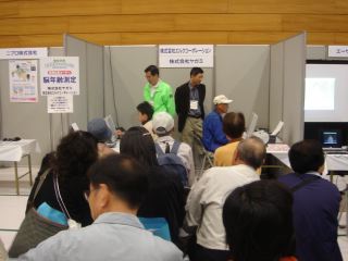 家族健康チェックコーナーは前回も大人気でしたが、今回もそれを上回る大人気! 骨密度測定は何と2時間待ち! 行列のできるラーメン屋さん状態でした(笑)。足裏測定・脳年齢・物忘れスクリーニング検査にも人気が集中してました。その他にも、体力測定コーナー(ステッピング・握力・全身反応・閉眼片足立ち)、エルゴメーター測定・加速度脈派測定・スモーカライザー・歯のブラッシング指導・お薬相談など人気爆発でした。