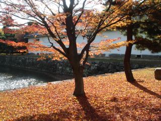 仕事で京都へ。約1時間の自由な時間があり、二条城へ。紅葉で有名な場所はどこも混雑していて1時間では無理だそうだ。でも城内の木々も紅葉していたりしてつかの間の自由時間を楽しんだ。