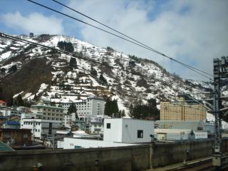 左側には頂きが雲隠れした鳥海山が見えている。余目からは東に進路を変え、最上川に沿って上っていく。川面には上流へ回送中の川下り船がみえる。山形新幹線終点の新庄に到着。新庄駅は、山形方面と秋田方面は軌道(線路の幅)が異なるために奥羽本線の直通運転はできない。そこでこの弱点を逆に生かし、ホームが頭端式(終着駅スタイル)で向き合うという変わった構造になっているので、階段を使わずに乗換が可能なのである。新庄は奥羽本線と陸羽東線と陸羽西線が四方に延びる交通の要衝である。