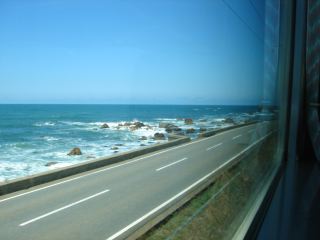 海のそばを走っているのにやたらとトンネルが多い。それだけ地形が険しいのだ。昔はこのあたりでの陸上交通は大変困難であっただろうと推測される。だから北前船などの海上交通が発達したのかな? などとしばし社会科のお勉強である。