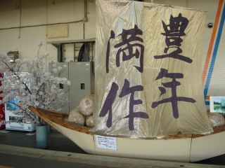 酒田駅に戻ると構内には大獅子と豊年満作と書かれたオブジェがあった。それを過ぎると右手の0番線に快速最上川4号が止まっていた。2両セミクロスでトイレあり。ワンマンで運行される。余目までは羽越本線を戻る(南下)ことになる。