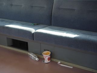 平面移動で鳴子温泉行きに乗り換える。乗客は高校生が多い。こちらの高校生は行儀が悪い。なんと車内でカップラーメンを食べ、その容器をそのまま放置している。ここまでひどいとはねぇ。“行儀が悪いぞ!、陸羽東線沿線の高校生!” 列車は山の中をゆっくりと上っていく。