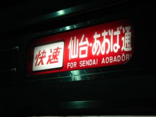 仙石線快速は4両編成のロングシート。今回初めてのロングシートである。真っ暗な中を突っ走り、1時間余りで仙台市内へ入る。終着駅はあおば通駅で一つ手前が仙台駅となる。
