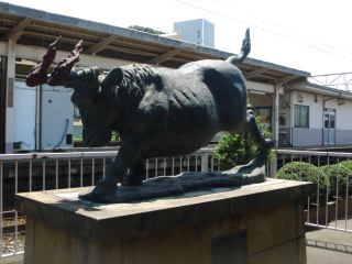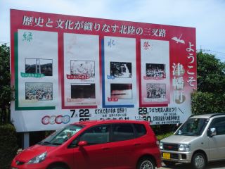 津幡駅は北陸本線と七尾線の分岐駅である。ここから七尾線に乗り換えるのだが、ちょっと時間があるので、駅前を散策。牛の像やソーラーシステムで夜に光るカエルの照明灯などがあった。また今日は「火と水と音の祭典 笠野祭り」の日だそうだ。街中は盛り上がっているのだろうか? 徐々に暑くなってきたので、待合室で半袖のシャツに着替える。