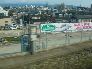 金沢駅が近づくと北陸新幹線の工事が進んでいるのが目に入る。