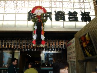 意外と早く着いたのですが、チケット売り場にはたくさんのお客さんが並んでいます。新春だけに奮発してできるだけ前の席で見ようとA席(3,500円)にしようと話してたのですが、すでに売切れ。一般席(3,000円)のチケットになりました。