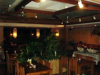 店内は2階席と1階席がありますが、2階は4人用テーブルしかないので、5人で行った我々は1階席に案内されました。昼間でしたら2階席の方が圧倒的に景色がよさそうです。写真は露出が不足しておりちょっと暗いのですが、なかなかのいい感じです。