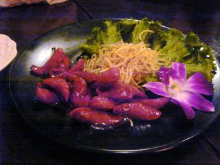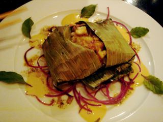 魚介類のたっぷり入ったピラフ・バナナの皮包み(これお勧め) ◇ 特製照焼きチキンとテリライス